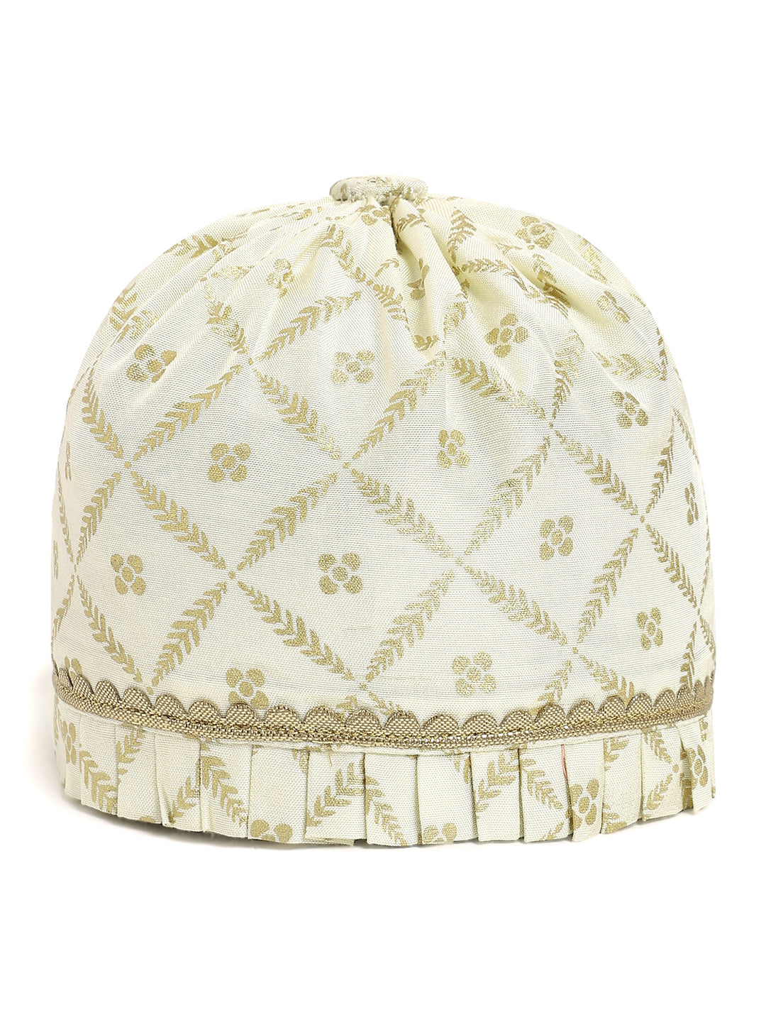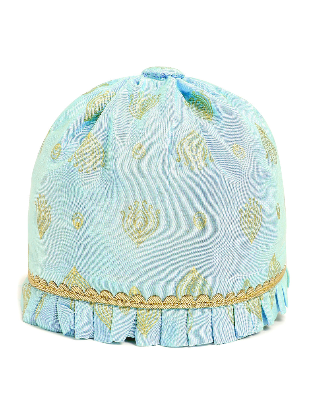 Top off your baby boy’s festive look with this adorable cap, made to match perfectly with his outfit. Crafted in soft viscose with delicate golden foil print and lace, it’s gentle and comfy. Whether it’s for a pooja, naming ceremony, or simply dressing up for clicks, this cap adds a finishing touch to his traditional ensemble.