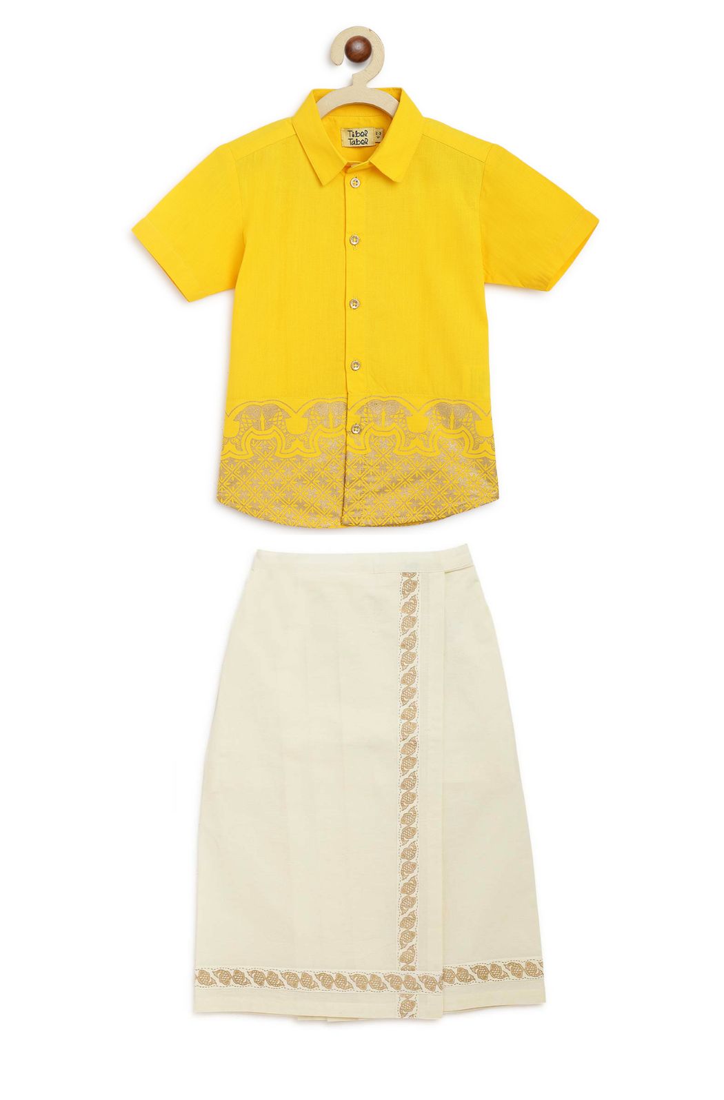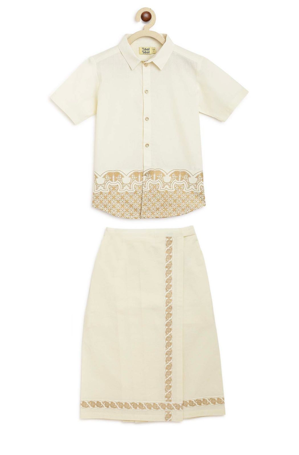 Boys Panel Gold Print Shirt-Cream