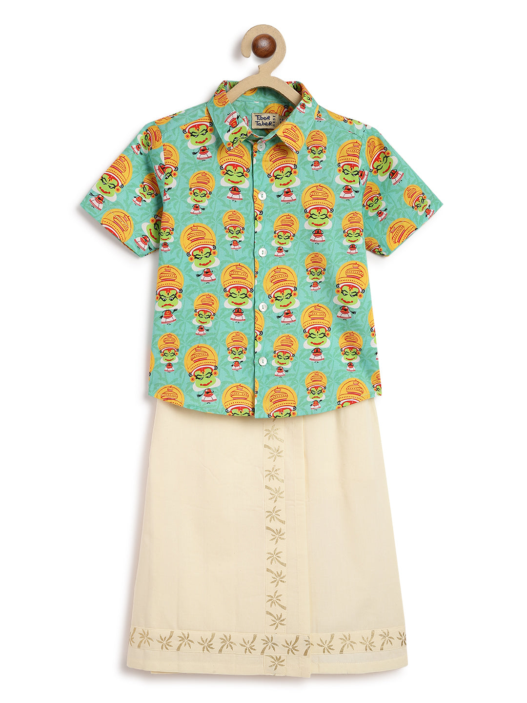 2 Pc Mundu Dhoti Shirt Set-Cream by Tiber Taber Kids