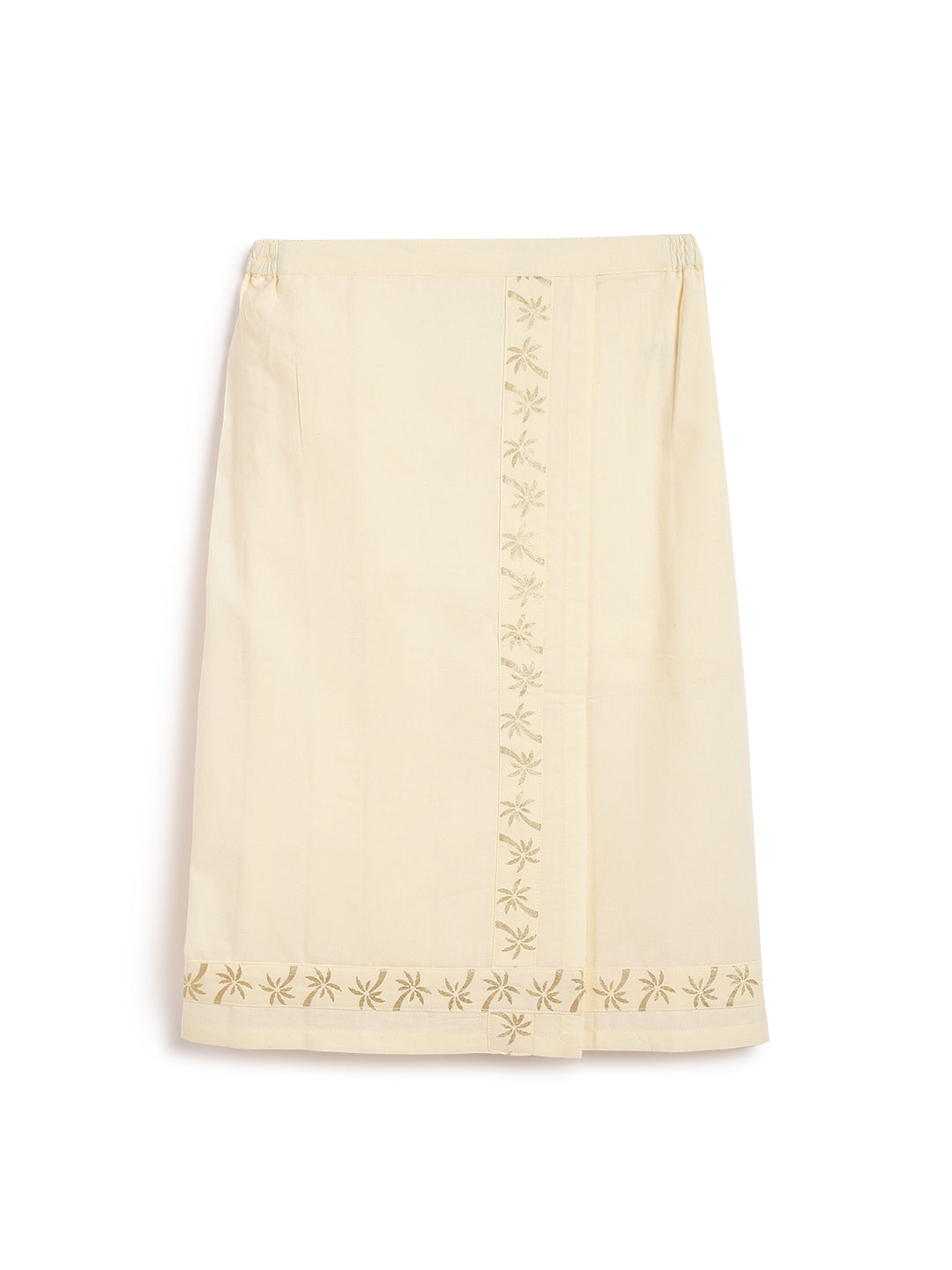 Add a touch of ethnic charm to your kid's wardrobe with this versatile cotton Angvastram featuring a coconut tree print. Perfect for pairing with a Mundu dhoti and shirt for a traditional look.