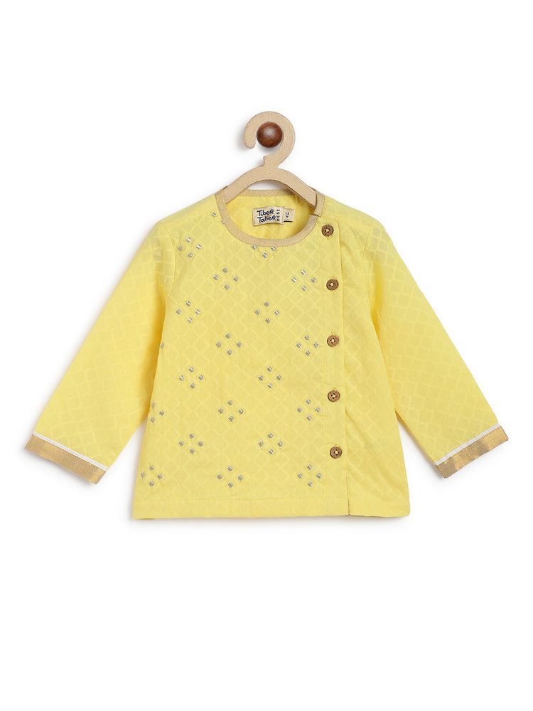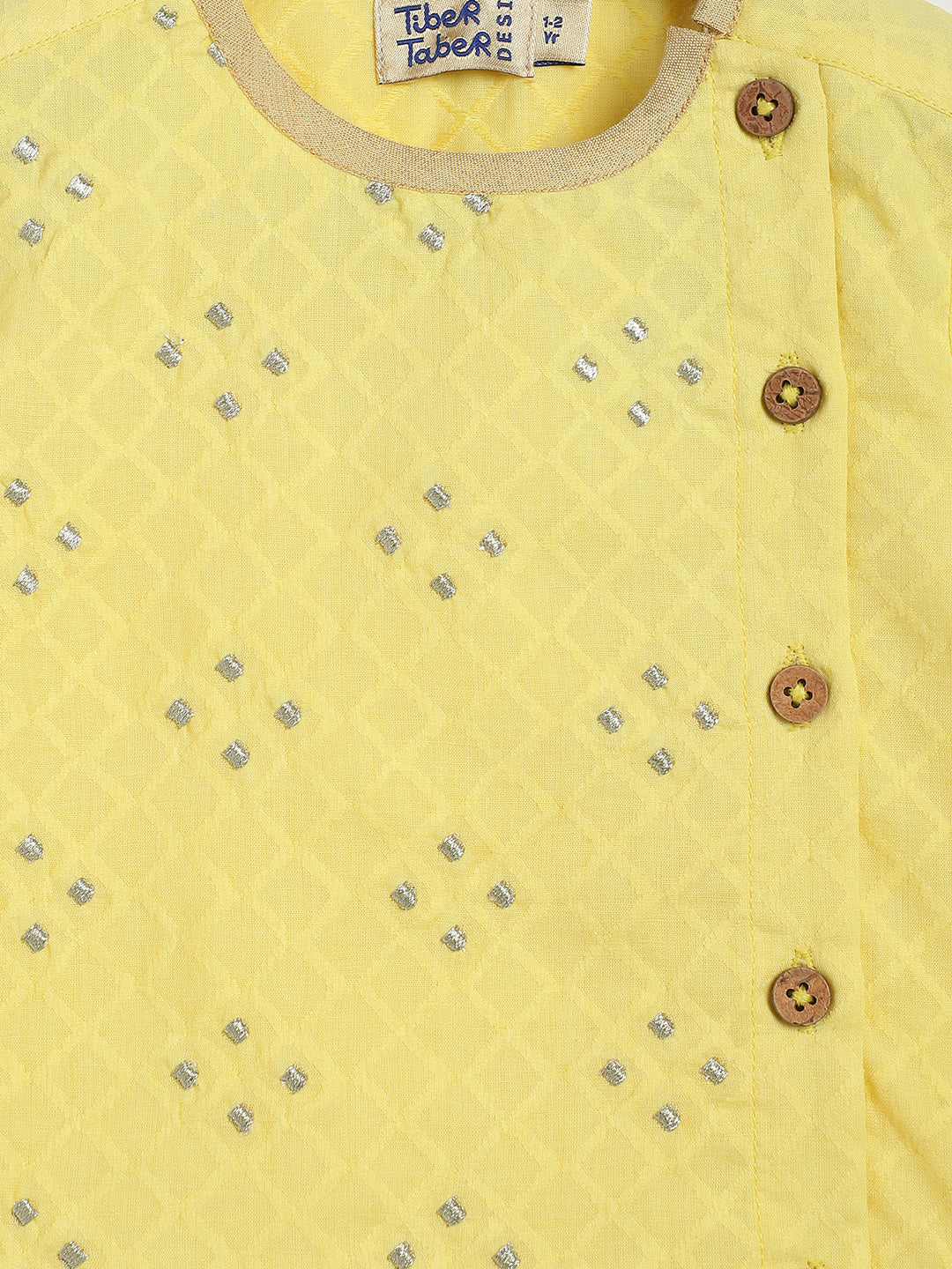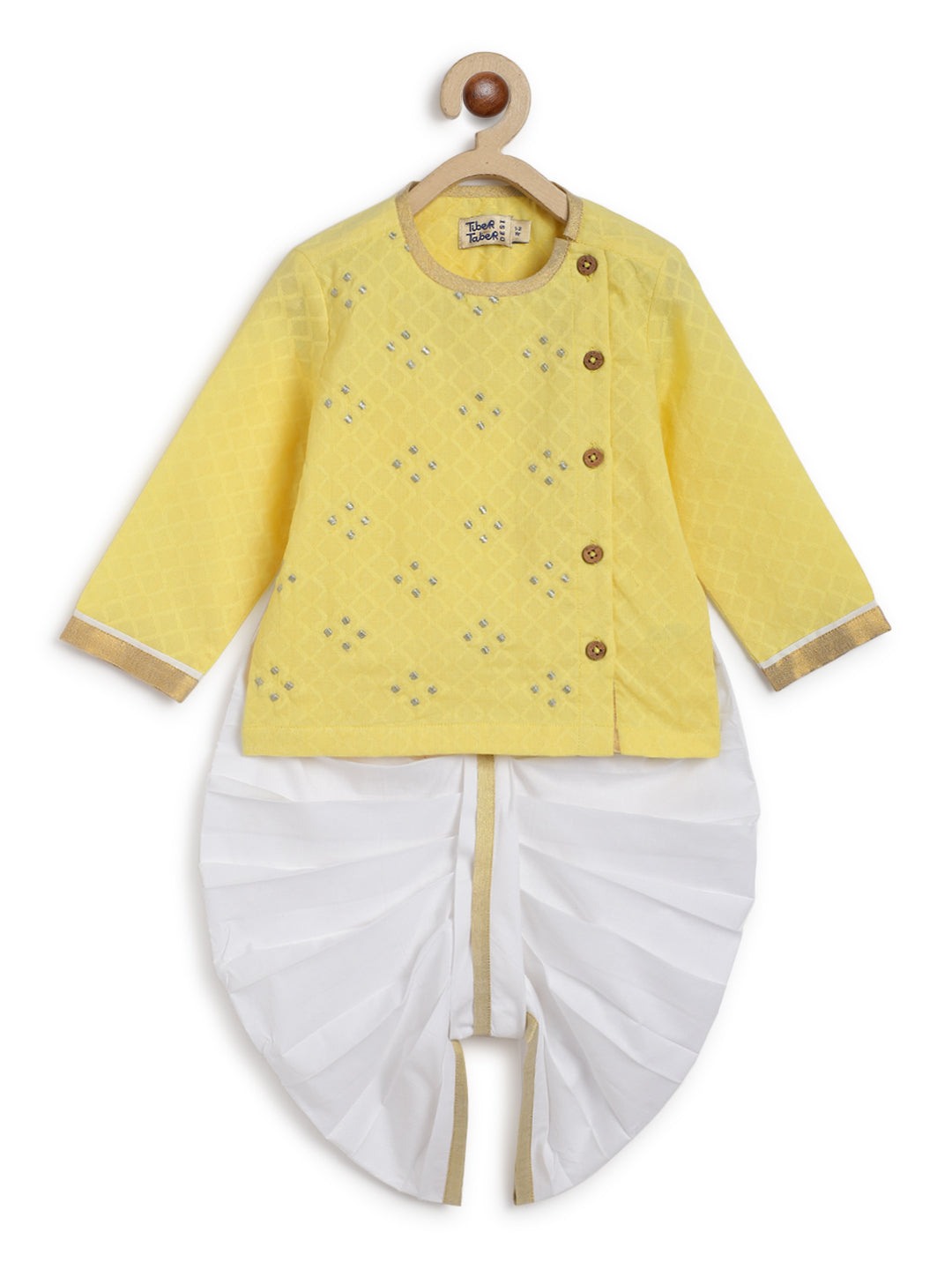 Details: 2 Pc Set (Kurta, Dhoti ) with full sleeve round neck kurta. Kurta has beautiful zari embroidery, comes with our Special Infant dhoti.