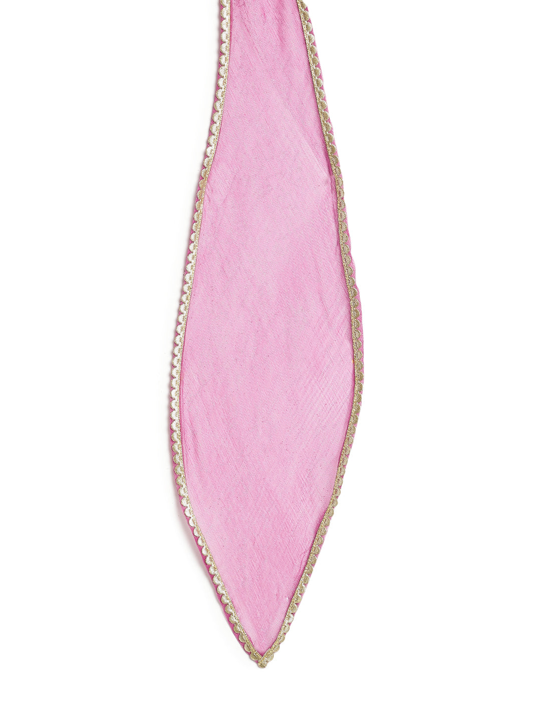 Now here’s the perfect outfit for your ‘ghar ki laxmi’. The bright green pleated kurta features Laxmi feet motif, perfect to mark auspicious beginnings. Paired with a vibrant purple salwar with golden foil print and a soft chiffon dupatta, the outfit is traditional yet playful. The Kurta comes with a shoulder loop to keep the dupatta in place.