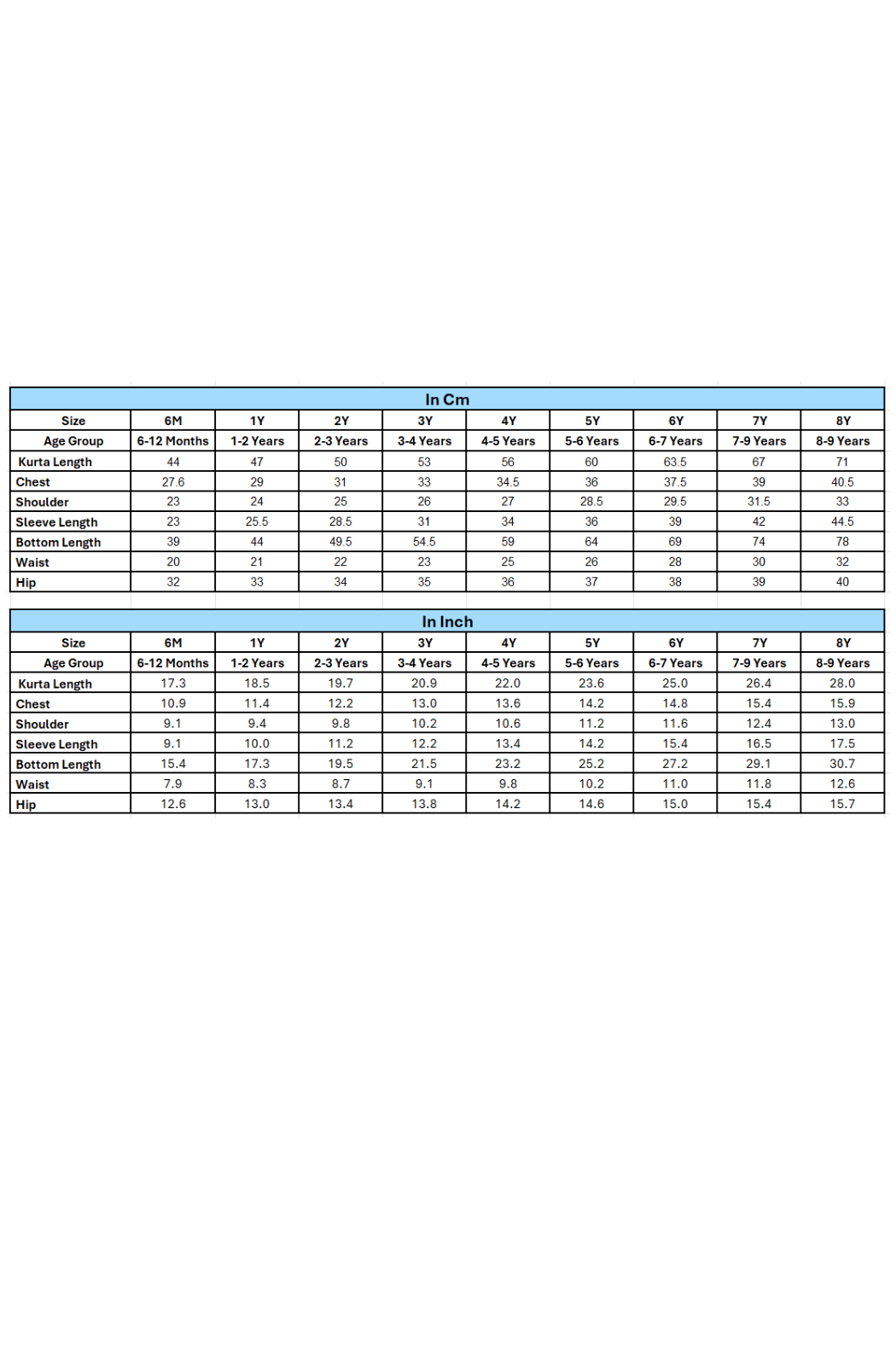 Size chart