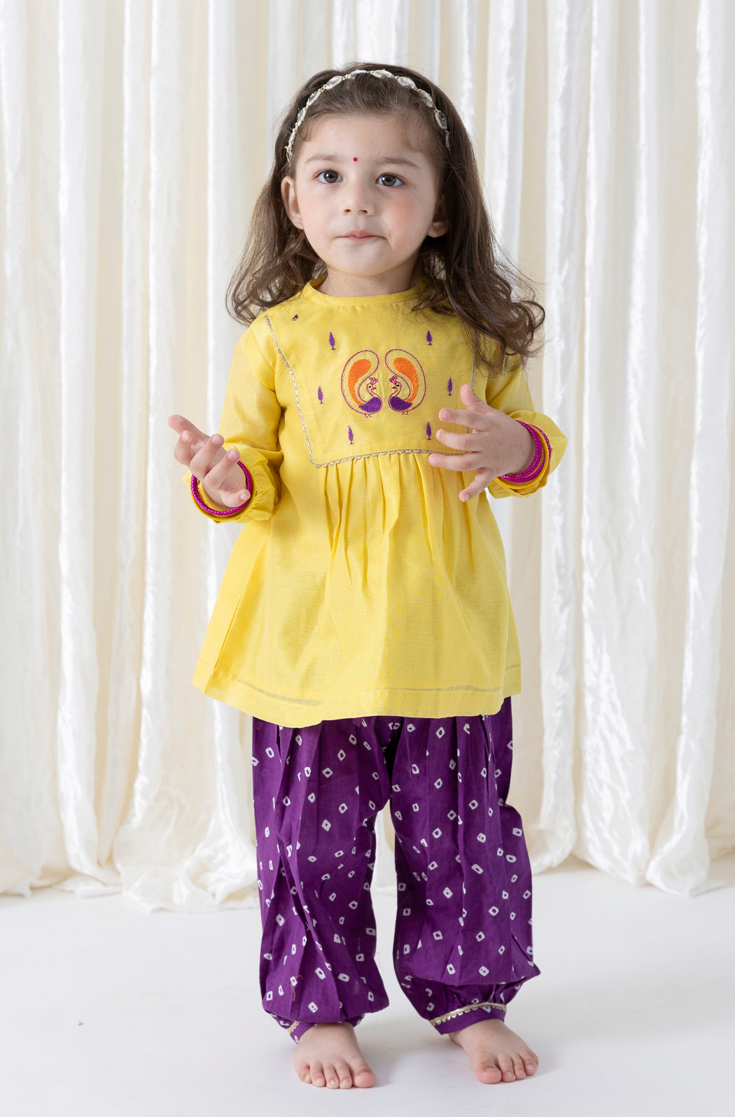 - Fabric: 100% Cotton pleated salwar with bandhani print.
