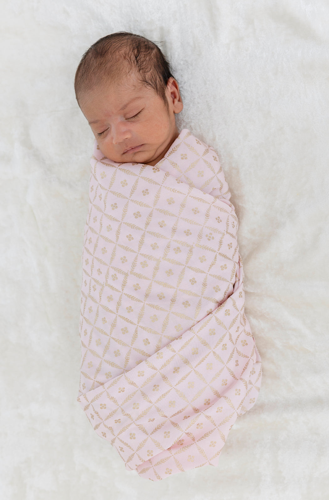 Wrap your baby in shimmery softness with this adorable swaddle. Made from 100% viscose and features a golden foil print. Brings a subtle sparkle to special moments like a naming ceremony, newborn photoshoot, or family gathering. Lightweight, breathable, and buttery-soft, this unisex swaddle is multi-purpose and a must-have for all new parents.