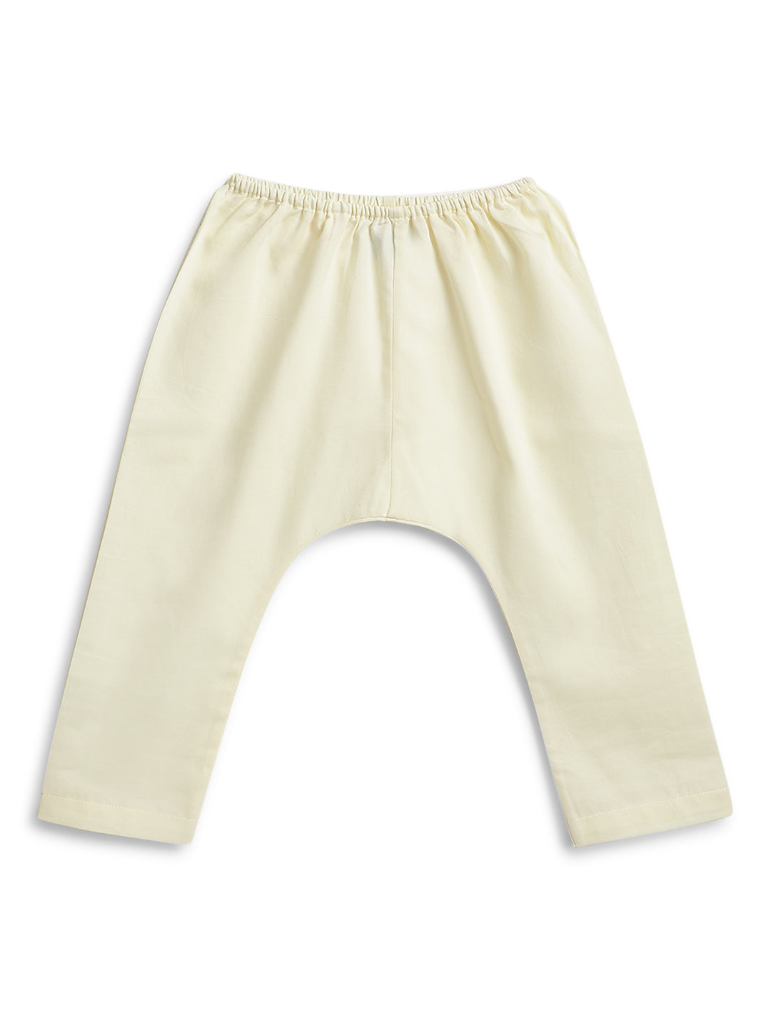 Celebrate your baby boy’s special moments in this elegant cream kurta set with delicate rose motif foil print. Made in soft viscose, it features a round neck and a relaxed fit. The cotton pyjama is tailored to comfortably accommodate diapers, making it perfect for newborn festivities. Lightweight and gentle, this set brings together festive charm and everyday ease.