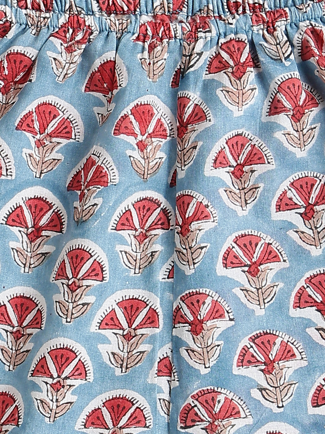 Our most loved and truly innovative flat out jhablas made in the most loved textlie craft of India. Summers are meant to be lived in cheery block printed cottons. Tiber Taber’s OG flat out jhablas are meant to take away the stress of outfit changes especially for delicate newborns and new parents. A full front opening on one side and a shoulder opening on the other make gament changes a breeze. These also comes with 2 pants because we know how many pants you are changing for a new born.
