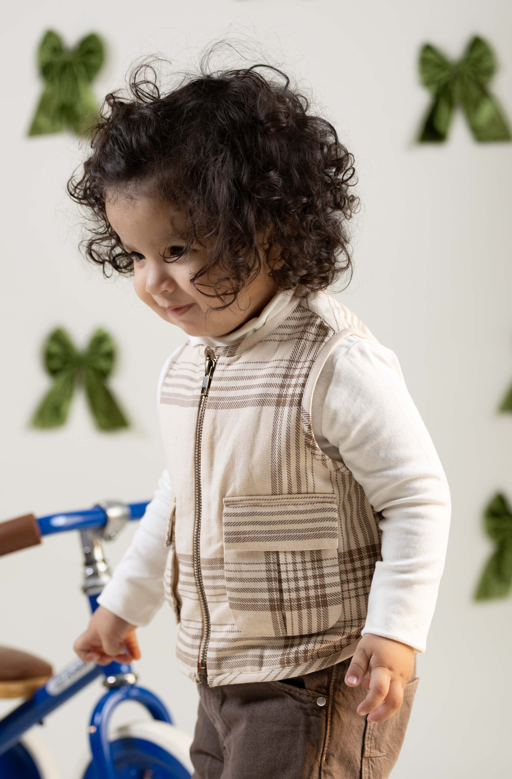 The perfect way to layer up for winters is this sleeveless Jacket. For mild winters wear them over full sleeves t shirts and for super cold days wear them on your woolen sweaters. Versatile and easy to style with denims, chinos or joggers. Also, kids love pockets and so do we. The ideal non bulky and cartwheel friendly fit for our little star in the softest flannel.
