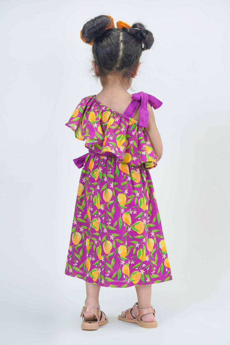 What's a summer without breezy dresses and quirky prints! Featuring our in-house mango print, this comfy yet stylish one-shoulder dress is perfect for birthdays, vacations and everyday playdates.